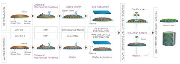 Xperi 的裸片對晶圓混合鍵合流程圖