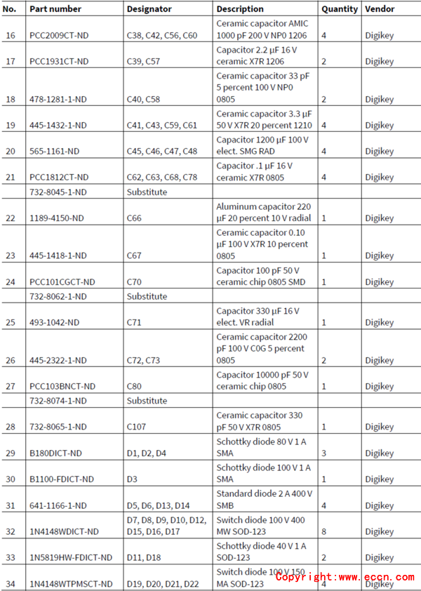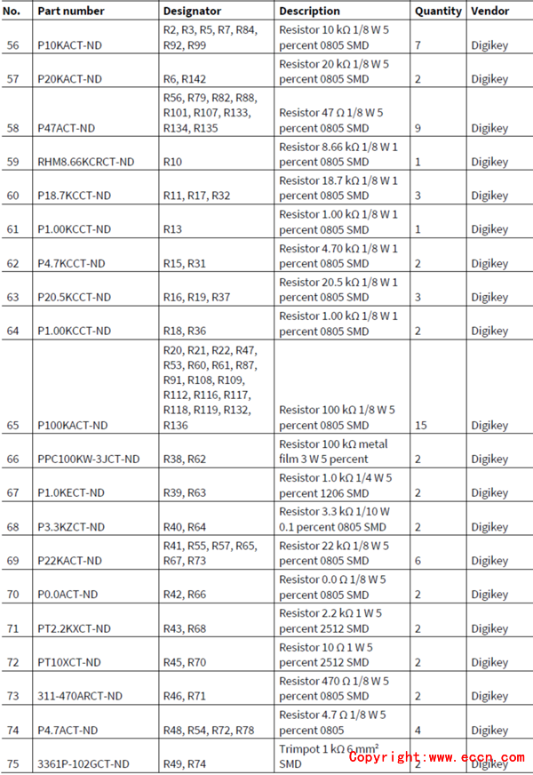 主板材料清單: