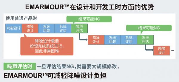 “EMARMOUR”是ROHM產(chǎn)品的品牌名,該品牌產(chǎn)品融合了ROHM的“電路設(shè)計技術(shù)”、“布局技術(shù)”、“工藝技術(shù)”優(yōu)勢開發(fā)而成,并在ISO 11452-2國際抗擾度評估測試中,實(shí)現(xiàn)在整個噪聲頻段的輸出電壓波動均在±300mV以內(nèi)的抗干擾性能。由于抗噪聲性能非常出色,有助于解決系統(tǒng)開發(fā)過程中的噪聲干擾問題,因而可減少設(shè)計工時并提高可靠性。