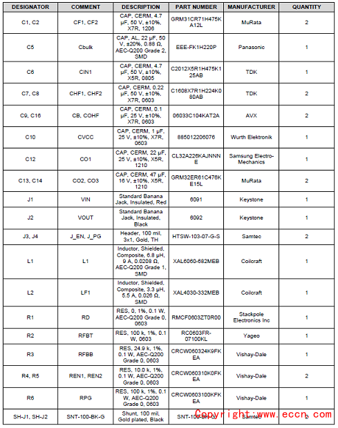 The Texas Instruments LM60440AQEVM evaluation module helps designers evaluate the operation andperformance of the LM60440-Q1 wide-input buck converters. The LM60440-Q1 is an easy-to-usesynchronous step-down DC/DC converter capable of driving up to 4.0 A of load current from an inputvoltage of up to 36 V. The LM60440AQEVM features an adjustable output voltage of 5 V and a switchingfrequency of 400 kHz. See the LMR60440-Q1 3.8-V to 36-V, 4-A Synchronous Step-down Voltage