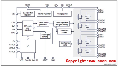 · Outputs protection and diagnosis (open load, short to battery, short to GND)
