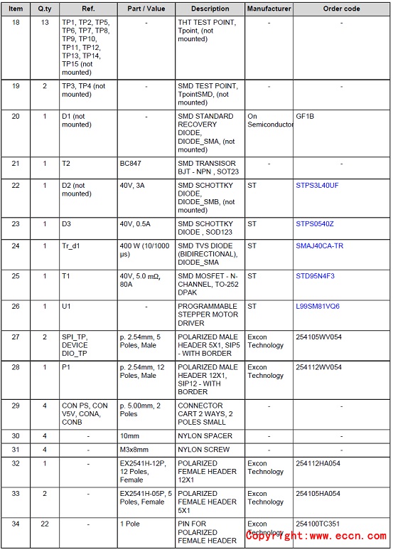 評(píng)估板AEK-MOT-SM81M1材料清單: