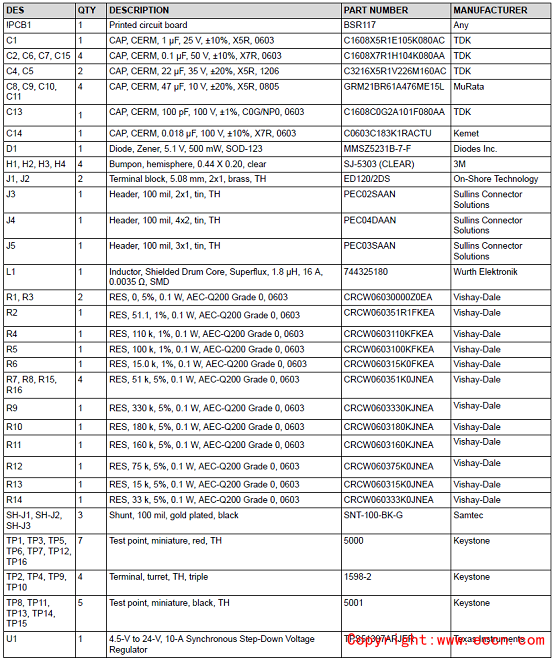 TI公司的TPS51397A是單片4.5V-24V 10A帶ULQ™操作的同步降壓轉換器,集成的MOSFET具有高效率和容易使用,外接元件數(shù)量最少,從而節(jié)省了電源系統(tǒng)的空間. TPS51397A采用D-CAP3™控制,提供內部補償?shù)淖羁斓乃矐B(tài)響應和極好的線路和負載調整.ULQ™ (超低靜態(tài)電流)在低功耗工作中延成電池壽命有極大的好處.器件的輸入電壓為4.5V到24V,輸出電壓為0.6V到5.5V,支持10A連續(xù)電流輸出,0.6 V ± 1%反饋精度(25C).集成的17-mΩ和5.9-mΩ FET,通過MODE引腳可選擇Eco-mode™和Out-of-Audio™,500kHz和800kHz可選擇開關頻率,可選擇軟起動時間,默認間隔1.2ms,大占空比操作,集成了功率良好指示器,內置輸出放電功能,逐個周期的過流保護,閉鎖輸出OV和UV保護,非閉鎖UVLO和OT保護,工作結溫度-40C 到125C,23引腳3.0x3.0 mm HotRod™ VQFN封裝.主要用在筆記本和PC電腦,超級本,手持平板計算機,工業(yè)PC<單板計算機和分布電源系統(tǒng).本文介紹了TPS51397A主要特性,功能框圖, 5V 10A參考設計電路圖及其參考設計主要參數(shù),以及評估模塊TPS51397AEVM主要特性,電路圖,材料清單和PCB設計圖.
