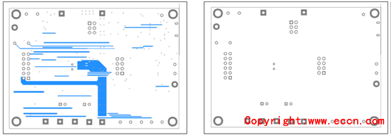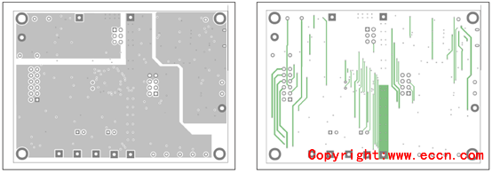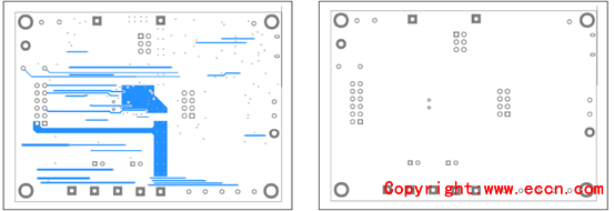 圖15.評估板MAX17320G EVK PCB設(shè)計圖(2):左:層2;右:層3