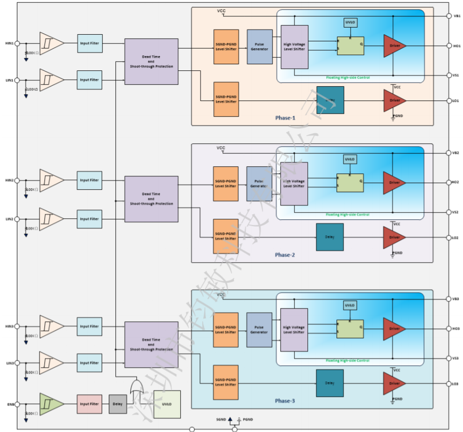 內(nèi)置了死區(qū)時(shí)間  內(nèi)置直通保護(hù)