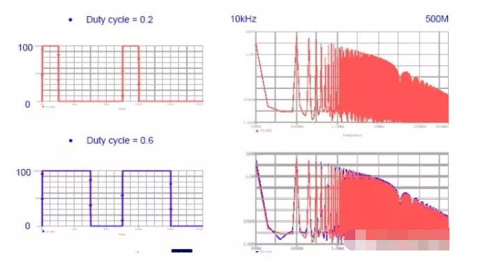 占空比越大時,干擾的幅度也大一些,這個可由FFT的系數(shù)算出來。