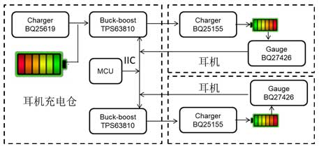 b. 充電倉端采用2顆TPS63810分別給2個(gè)耳機(jī)端供電。