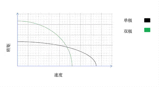 圖5:?jiǎn)螛O與雙極串聯(lián)步進(jìn)電機(jī)轉(zhuǎn)矩/速度曲線