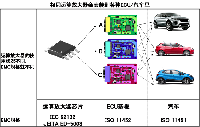 運算放大器用途廣泛,相同運算放大器會安裝到各種電氣電子設(shè)備里。各種設(shè)備要求的EMC規(guī)格有所不同,所以對于單體運算放大器的抗EMI干擾性能的比較和測試是非常重要的。
