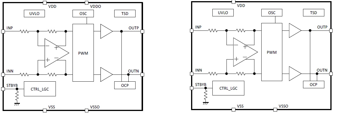 NJU8759A 是一款單電源模擬輸入且無需輸出濾波器的D級功放。 電源電壓從1.8V 到5.5V,只需2根電池就可工作。NJU8759A 的D 級動作使之具有1.7W 功率輸出 (有8Ω 負載時)和3.0W 功率輸出 (有4Ω 負載時)的高輸出特點,BTL 輸出構(gòu)成使之無需輸出耦合電容。并且,以往的D 級運放必須使用輸出LC 濾波器,而使用此產(chǎn)品無需輸出濾波器,可消減外接部件。NJU8759A的特點還有1μA (max)的待機電流以及1.8V 單電源啟動電壓,非常適合用于小型便攜設備、隨身聽音響設備,還有需要電池驅(qū)動高輸出的報警設備、安防設備等。NJU8759A 的封裝系列有備散熱盤 exposed pad 的8 腳 HSOP8 封裝和用于要求省空間器件的1.45mm x 1.45mm 晶片級別封裝NJU8759WLC1 。
