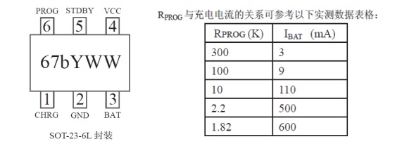 TP4067為SOT23-6封裝,相比TP4065多一個STDBY引腳,為雙燈指示,充電紅燈亮,