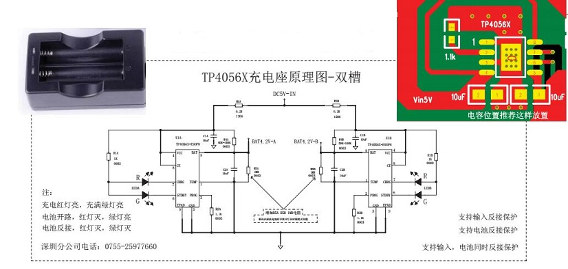TP4056X-各1A充電座原理圖