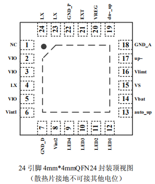 TP5602 提供功能設(shè)置:插電自動充電,按鍵升壓,輕載自動停機(升壓時);降壓充電恒流可調(diào);5V 升壓輸出恒流外部可調(diào)。其 QFN24 超小型封裝與簡單的外圍電路,使得 TP5602 也非常適用于其他便攜式設(shè)備的大功率獨立充電或獨立的升壓管理應(yīng)用。