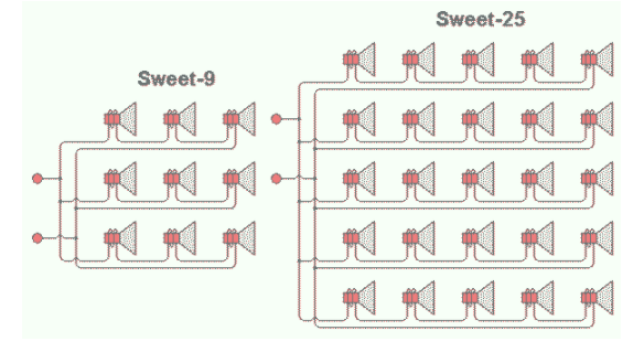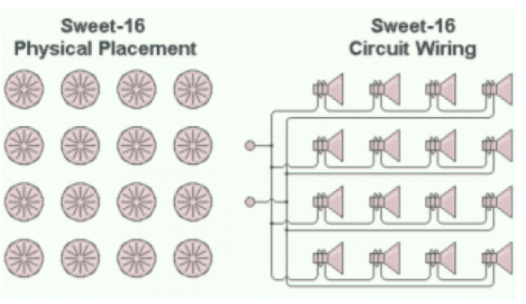 舉例來說,如果每個揚聲器呈現(xiàn)8Ω的音圈阻抗,則16個揚聲器組成的復(fù)合揚聲器也將呈現(xiàn)相同的8Ω。