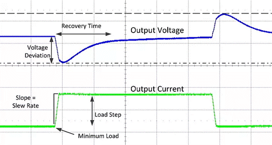 • 負(fù)載階躍的大小(以安培為單位或以滿載的百分比表示)