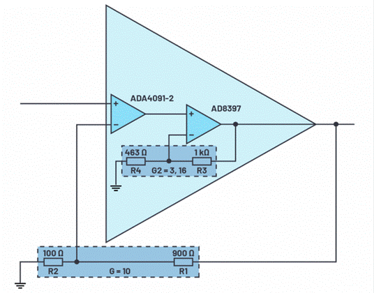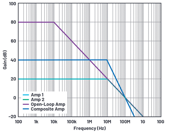 圖2. 通過(guò)復(fù)合放大器擴(kuò)展帶寬