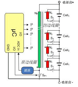 相對被動平衡,不僅提供低頂部均衡,也可以實現(xiàn)底部均衡,當(dāng)某節(jié)電池電壓過低時,通過接在電池組上的繞組可以把電池組的能量轉(zhuǎn)移到該節(jié)電池上,提高的系統(tǒng)能量的利用率