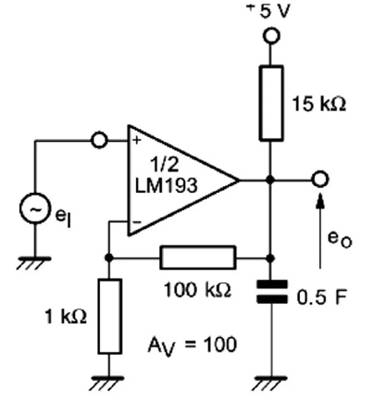 搞電子設(shè)計的朋友都知道,在要求不高的場合,可以用運算放大器代替電壓比較器使用,但反過來能把電壓比較器當(dāng)運算放大器用嗎?我們先來看一下仿真。筆者選擇一片常用的比較器LM393,用Multisim11.0軟件進行仿真。在查閱LM393數(shù)據(jù)手冊時,意外發(fā)現(xiàn)ST公司 推薦的一個電路圖,如圖1所示。這是比較器用作低頻放大器時的推薦電路,那就用它來做試驗吧!