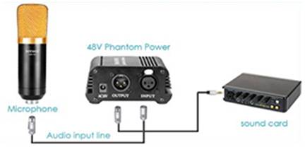 電容麥克風的內部電路需要使用幻象電源來驅動,給電容板施加外部偏壓,幻象電源可由獨立的設備提供,也可以通過聲卡或調音臺提供,麥克風通過一條線纜接收電力同時發(fā)送聲音信號,供電無需單獨的電纜而是在信號線中,因此稱為“幻象”。