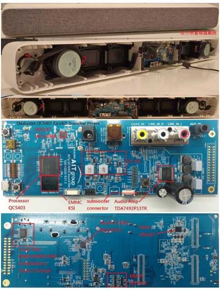 圖示3-基于高通QCS400 SoC的2.1聲道智能音響參考設計方案開發(fā)板及實物圖