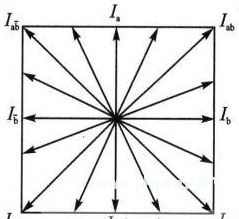 一般的細(xì)分方法只改變某一相的電流,另一相電流保持不變。如圖所示,在O°~45°,Ia保持不變,Ib由O逐級(jí)變大;在45°~90°,Ib 保持不變,Ia由額定值逐級(jí)變?yōu)?。該方法的優(yōu)點(diǎn)是控制較為簡(jiǎn)單,在硬件上容易實(shí)現(xiàn);但由圖5所示的電流矢量合成圖可知,所合成的矢量幅值是不斷變化的, 輸出力矩也跟著不斷變化,從而引起滯后角的不斷變化。當(dāng)細(xì)分?jǐn)?shù)很大、微步距角非常小時(shí),滯后角變化的差值已大于所要求細(xì)分的微步距角,使得細(xì)分實(shí)際上失去 了意義。