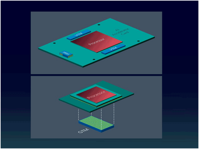 分比式電源架構(gòu)是Vicor的創(chuàng)新,其核心是將功率轉(zhuǎn)換與穩(wěn)壓模塊分成二部分,重點是第二級無需負(fù)責(zé)穩(wěn)壓,僅具功率轉(zhuǎn)換功能,從而電源面積可以做到小而薄,位置可以放在側(cè)面,布局在距CPU最近的地方,這樣便去掉了最后一英寸。不僅如此,Vicor的垂直電源設(shè)計,將封裝模塊從原來的PCB板上直接貼到CPU的背面,不僅減少了額外損耗,還節(jié)省了PCB的空間,留出更多的位置給計算應(yīng)用。