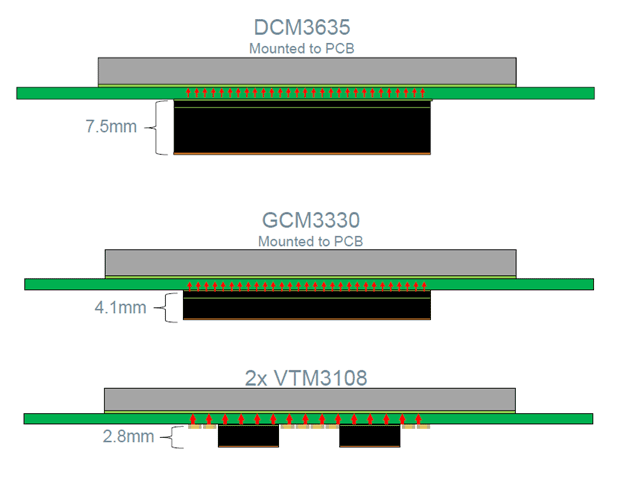 GCM3330模塊,高度4.1毫米,僅有第二級功率轉(zhuǎn)換部分,貼在CPU下面,這種情況下相對于DCM3635模塊簡單,且節(jié)省空間。