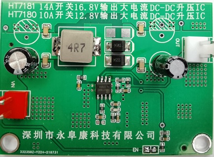 深圳市永阜康科技有限公司針對升壓值13V以下的DC-DC升壓應(yīng)用需求,推廣一款集成10A開關(guān)管的12.8V輸出、大電流非同步DC-DC升壓IC:HT7180。HT7180采用獨(dú)到的電路研發(fā)技術(shù)以及先進(jìn)的半導(dǎo)體工藝制程,基于SOP8封裝,工作效率高達(dá)90%以上,無需外加散熱器,3.7V輸入升壓到12V,可穩(wěn)定輸出2A電流。