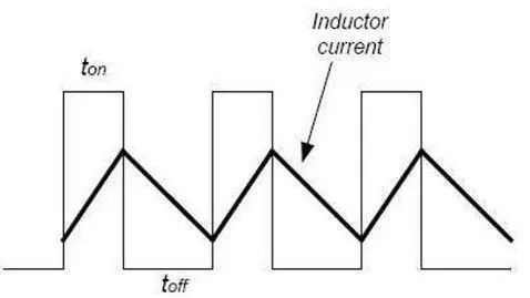 由于輸入是直流電,所以電感上的電流以一定的比率線性增加,這個比率跟電感大小有關(guān)。隨著電感電流增加,電感里儲存了一些能量。
