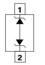 雙向保護 ESD 二極管的示例示意圖,由兩個陽極到陽極連接的 TVS 二極管組成。 (參考:AQxxC-01FTG TVS 二極管陣列)