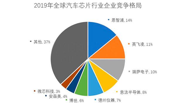 根據(jù)數(shù)據(jù)顯示,2019年全球汽車芯片市場,意法半導(dǎo)體占據(jù)了8%的市場份額。