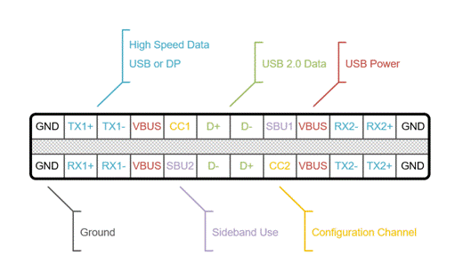現(xiàn)行主流 USB Power Delivery 3.0 高可支持 20V/5A 的電力輸出,即 100W 的充電功率( 2021 年 5 月發(fā)布的 PD 3.1 進一步支持高達 48V/5A 的電力規(guī)格)。USB Type-C 接口除了可以進行基于 PD 規(guī)范的大功率充電外,還可以實現(xiàn) DisplayPort 1.4 視頻傳輸、Thunderbolt 4 等功能。因此,具有全功能 Type-C 接口的設(shè)備可以實現(xiàn)通過單一接口進行雙向充電、視頻輸出等功能。