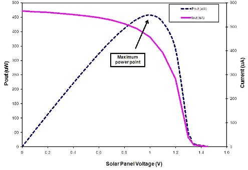 最大功率點 (MPP) 是能夠獲得最大功率的太陽能電池工作區(qū)域。圖 1 中的曲線圖表明了該區(qū)域。該曲線圖顯示了典型輸出電流與輸出功率同 MPP 雙節(jié)太陽能電池板電壓曲線的對比關(guān)系。曲線上的 MPP 很明顯,因為它是對應(yīng)于太陽能電池板最大功率輸出的電壓和電流。MPP 與環(huán)境溫度和光線有關(guān),因此會隨時間而變化。這表明,利用太陽能電源的充電器必須具有相應(yīng)的電路,以隨環(huán)境條件變化不斷跟蹤 MPP。MPPT 方案種類繁多,包括簡單的開環(huán)技術(shù)(電池板電壓維持在固定開電路電壓)和復雜的微控制器類技術(shù)(測量輸入和輸出功率,然后正確調(diào)節(jié)電池板電壓)。