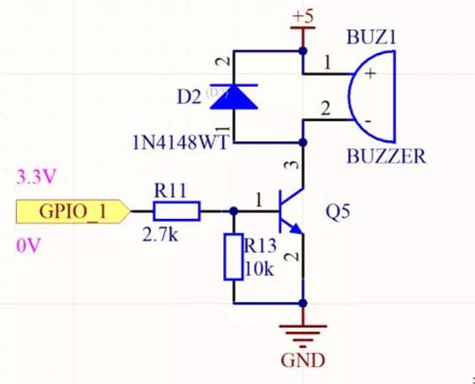 Ib≥1mA時,完全可以保證三極管工作在飽和狀態(tài),對于小功率的三極管此時Ic為幾十到幾百mA,驅(qū)動繼電器、蜂鳴器等功率器件綽綽有余。