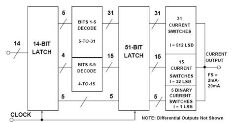 LSB的電流。后續(xù)4位解碼為15條線,驅(qū)動(dòng)15個(gè)電流開關(guān),各開關(guān)提供32