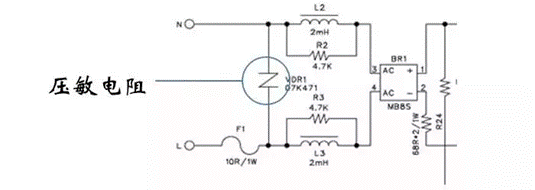 大功率設備斷開或接入電網(wǎng)時,會使得電網(wǎng)電壓上升或跌落。為了保護電源,有時會使用一個壓敏電阻接在輸入端。