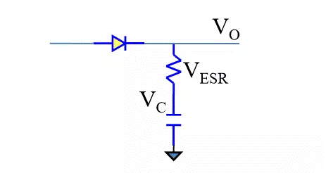 電容穩(wěn)壓的原理就是當VO電壓上升時,吸入電流,將能量存儲于電容,當VO電壓下降時,吐出電流,釋放能量。這個過程中,電流始終流過ESR。
