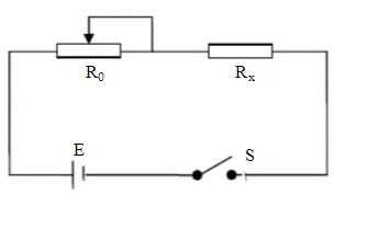圖示電路為限流式電路,電源電動(dòng)勢(shì)為E,內(nèi)阻不計(jì),滑動(dòng)變阻器阻值為R0,被測(cè)電阻的阻值為Rx。閉合開(kāi)關(guān)后,Rx兩端電壓為