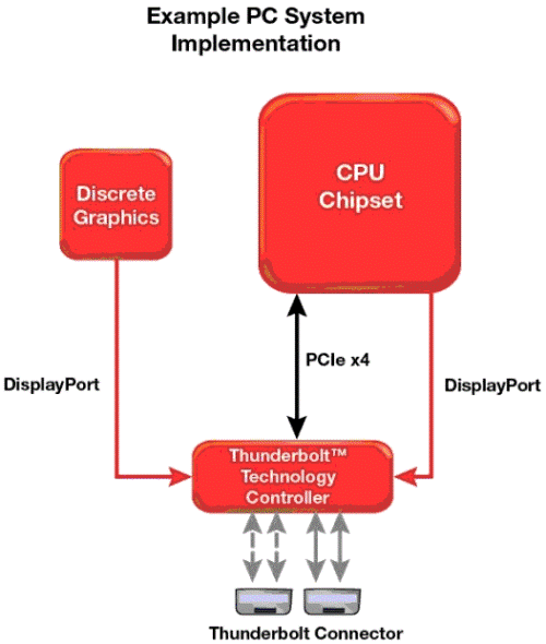 圖 1 PC 系統(tǒng) Thunderbolt™ 技術實現(xiàn)例子