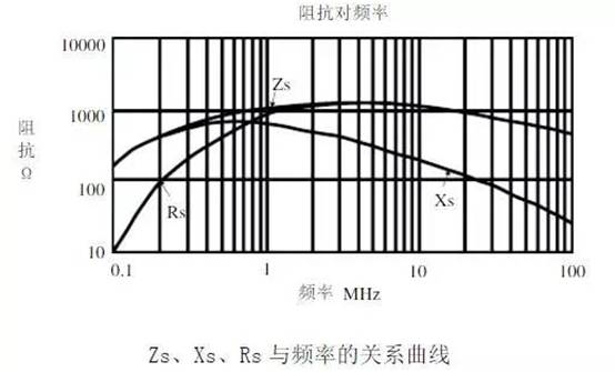 開(kāi)關(guān)電源產(chǎn)生的共模噪聲頻率范圍從10kHz~50MHz甚至更高,為了對(duì)這些噪聲有效的衰減,那么在這個(gè)頻率范圍內(nèi),共模電感器就必須提供足夠高的阻抗。因此高磁導(dǎo)率的錳鋅鐵氧體和非晶材料是非常適合的。共模電感器的阻抗Zs由串聯(lián)感抗Xs和串聯(lián)電阻Rs兩部分組成,Zs、Xs、Rs三者隨頻率變化的典型趨勢(shì)見(jiàn)下圖。