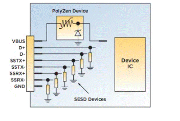 可以在VBUS上安裝PolyZen設(shè)備,以保護(hù)設(shè)備端USB。