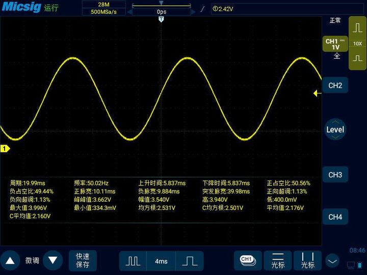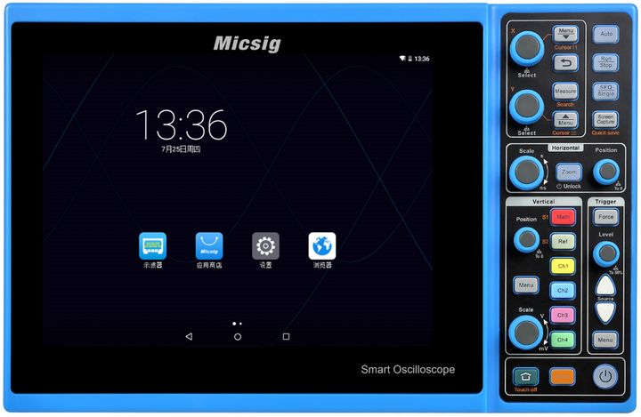 為簡單起見,本文僅以麥科信STO1104C這款帶全觸控和安卓系統(tǒng)的智能示波器為例來介紹,對于老式傳統(tǒng)的模擬示波器,隨著時代的進步已經(jīng)被明顯的淘汰,也就不再復(fù)述。