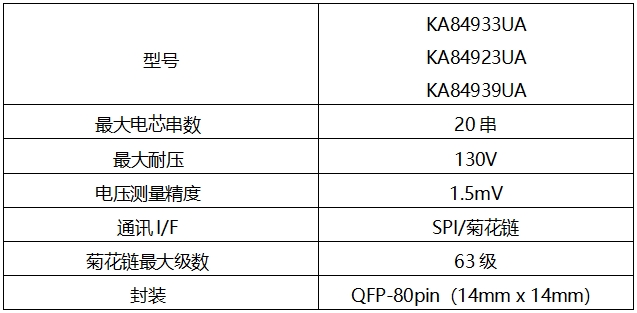 【產品型號】 第三代車用電池監(jiān)控IC(KA84933UA系列)
