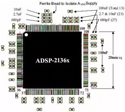 放置在有源器件傍的高頻濾波電容的作用有兩個,其一是濾除沿電源傳導過來的高頻干擾,其二是及時補充器件高速工作時所需的尖峰電流。所以電容的放置位置是需要考慮的。