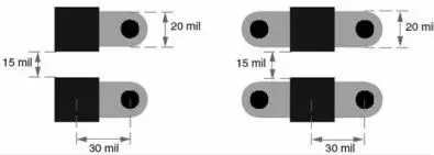 由于印制線越寬,電感越小,從焊盤到過孔的引出線盡量加寬,如果可能,盡量和焊盤寬度相同。這樣即使是0402封裝的電容,你也可以使用20mil寬的引出線。引出線和過孔安裝如圖4所示,注意圖中的各種尺寸。