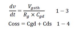 1-3中,Rg和Cgd越大,dv/dt越低。1-4中,Coss越低,dv/dt越高。在MOSFET選型中,MOSFET的Coss、Ciss、Crss參數(shù)特性,影響開關(guān)尖峰大小。