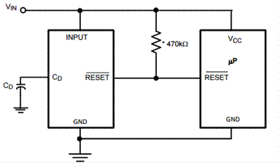 電壓監(jiān)控器與電壓檢測器不同,其通常使用外部電容器具有可編程輸出延遲,使其變得極其靈活。它們可用于正確排序現(xiàn)場可編程門陣列(FPGA)應用中多個電源,或防止系統(tǒng)故障。當電源電壓上升到電壓閾值(加上滯后,若適用),這通常會觸發(fā)設備“取消標記”復位信號并使系統(tǒng)從復位狀態(tài)返回。然而,由于存在由延遲電容器(CD)產(chǎn)生的延遲,因此在復位信號取消標志之前,電壓必須保持高于電壓閾值及指定時間延遲的滯后。這可防止系統(tǒng)過早地從復位狀態(tài)返回。