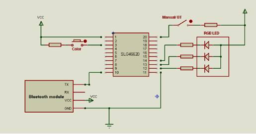 為了創(chuàng)建這個(gè)項(xiàng)目,我們將使用SLG46620 GreenPAK IC、一個(gè)藍(lán)牙模塊和一個(gè)RGB LED。