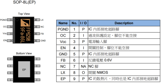 FP6298 是一顆電流控制模式升壓轉(zhuǎn)換器,脈波寬度調(diào)變,內(nèi)置 80mΩ, 4.5A, 12V MOSFET,能 做最大功率高轉(zhuǎn)換效率,周邊元件少可節(jié)省空間,適合用在行動(dòng)裝置上,精準(zhǔn)反饋電壓 0.6V (±2%), 內(nèi)建軟啟動(dòng)功能可降低開機(jī)時(shí)涌浪電流,過流保護(hù)透過外部電阻調(diào)整,電流控制模式讓瞬時(shí)響應(yīng)與系統(tǒng)穩(wěn)定性佳,輕載進(jìn)入省電模式(Skip Mode),達(dá)到輕載高效率,封裝為 SOP8-8L(EP)。