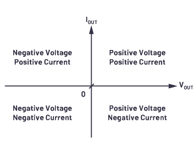 圖2顯示了四象限對于電源的含義。在坐標(biāo)系的象限中,x軸表示電壓,y軸表示電流。電流和電壓可以為正或?yàn)樨?fù)。